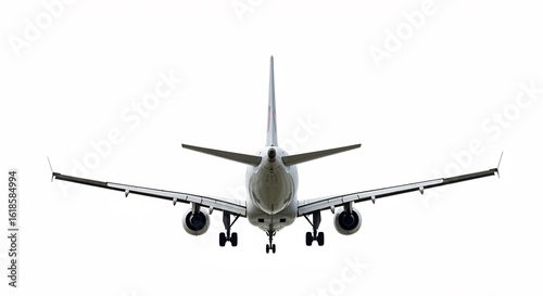 白バック 滑走路に向かう旅客機 後ろ姿 力強く上昇する姿. AI Generated