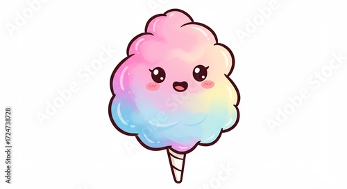 可愛い綿菓子イラスト 虹色グラデーション 幸せ笑顔. AI Generated