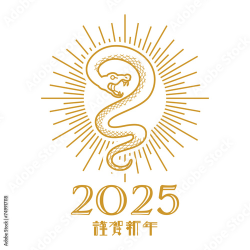 威嚇する螺旋状の白蛇と光輪 - 2025年 巳年 年賀状素材