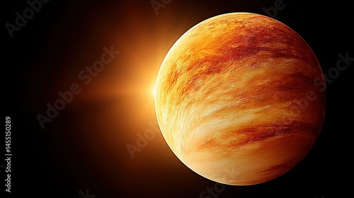 Close-up of a large orange object illuminated by bright light emanating from above it, viewed against a dark background sky
