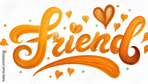 붓터치로 쓰여진 FRIEND 손글씨와 함께 주변을 감싸는 하트 장식