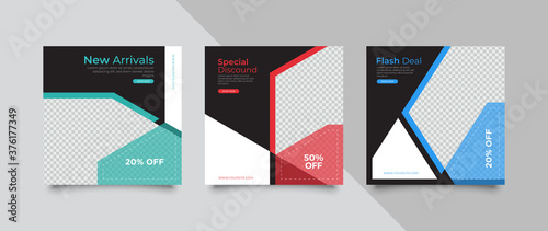 3 Editable square banner layout template. modern promotion square web banner for social media.