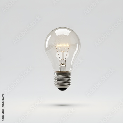 A glowing lightbulb floating in a vast white space symbolizes a new idea. Minimalistic composition, high definition