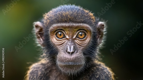 A monkey's intense face in focus against a blurred background