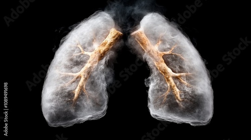 a pair of lungs with smoke coming out of them, set against a black background The lungs are animated, giving the impression of movement
