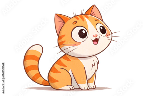 Cute sitting cat cartoon icon designed in a flat 2D style for playful illustration isolated on transparent background