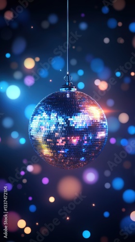 Disco Ball with Colorful Bokeh Lights