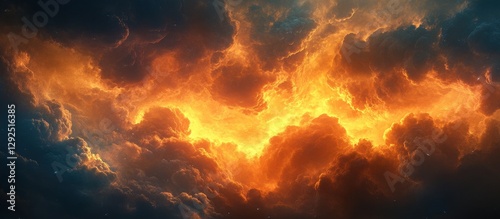 ** Dramatic Fiery Sky with Vibrant Orange and Dark Clouds Creating a Stunning Natural Phenomenon at Sunset..**