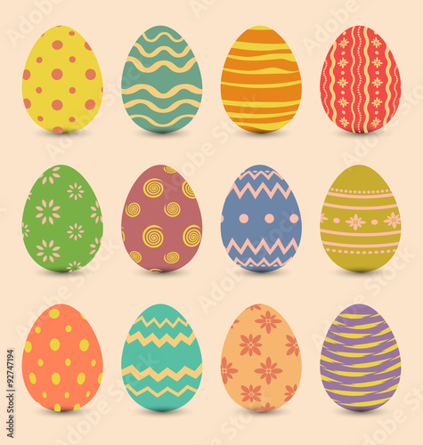Easter set old ornamental eggs with shadows