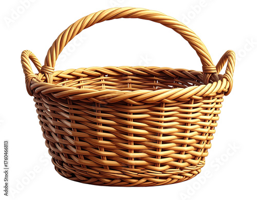 Empty Wicker Basket Front View, Natural Straw Texture, isolated on transparent background