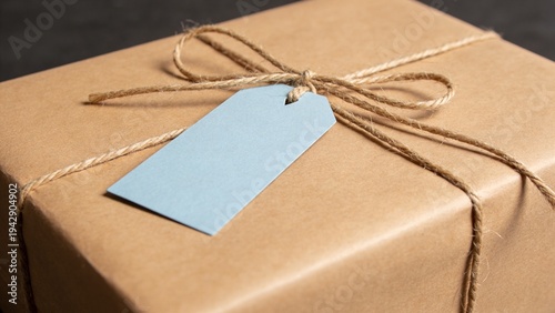 features a neatly wrapped rectangular package in a minimalist style. The package is covered in plain brown paper, giving it a rustic and simple