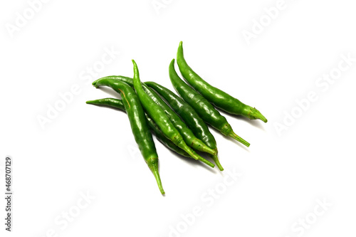 白背景の青唐辛子 コピースペースあり Green chili peppers (chile verde) on white background with copy space