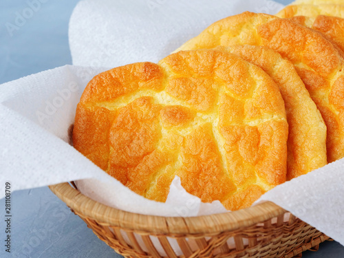 Keto cloud bread also known as oopsie bread. Low-carb, gluten free ketogenic diet oopsie rolls in a basket