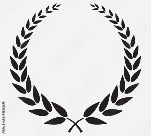laurel wreath icon - symbol of victory and achievement. Vintage design element for medals, awards, coat of arms or anniversary logo. Gray silhouette isolated on white background. Vector illustration