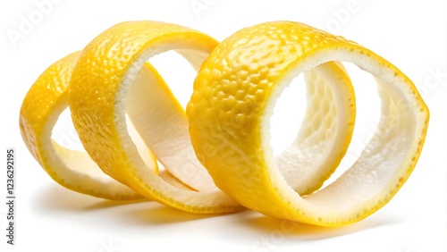 Lemon peel, spiral cut isolated on white background.