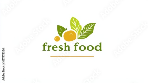 logo design for "Fresh Food" featuring simple shapes and a clean vector style. The logo utilizes a light green and yellow color palette on a white background