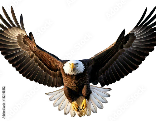 Majestic bald eagle soaring with wings spread isolated on transparent background