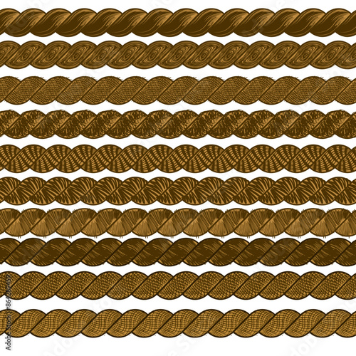 nautical rope brush design for graphic artists for creative projects, Rope brushes set. Rope frame design elements. Seamless marine rope pattern brush - Part 4