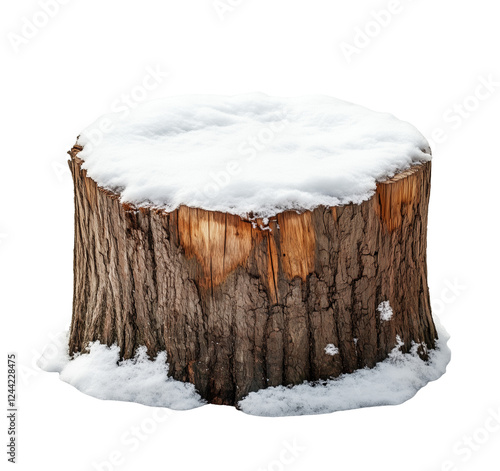 Old Tree Stump with Snow on Top, Isolated on Transparent Background