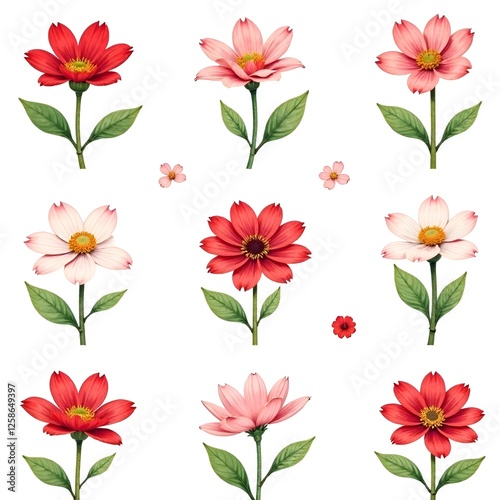 pattern of spring pink flowers on a white background.