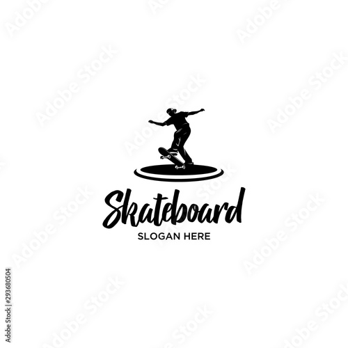 playing skateboard silhouette logo vector
