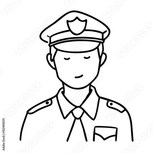 Police Officer Outline Vector Simple Black Line Art Illustration