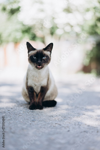 portrait of a Siamese cat, an animal with a displeased facial expression. Grumpy Cat