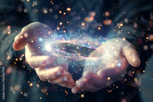 Radiant Hands Forming Halo of Sparkle Magic, Abstract Creative Force