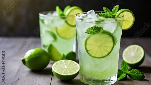 Refreshing summer cocktail with lime and mint