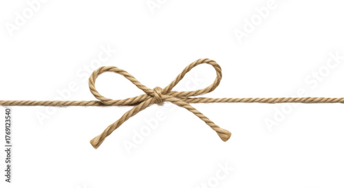 Rustic natural twine rope bow knot with horizontal strings on a transparent background, PNG image, PNG file