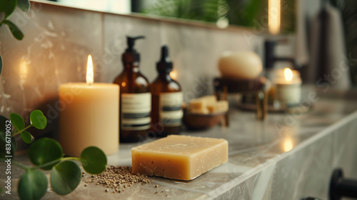 Scented Soap Bar with Candles and Spa Essentials