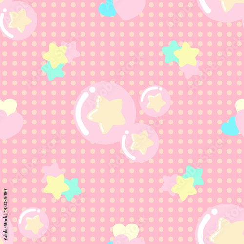 Seamless pattern cute star and heart on pink background.