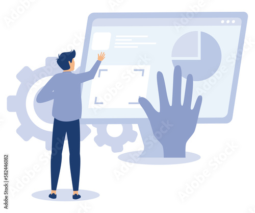 Sensor technology concept, hands-free control, motion sensing device, AI reading, flat vector modern illustration