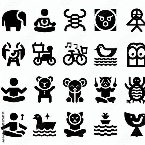 series of simple black-and-white clipart figures arranged in two rows, each with four distinct categories.