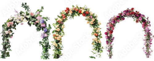 Set of beautiful wedding flower arches on transparent background