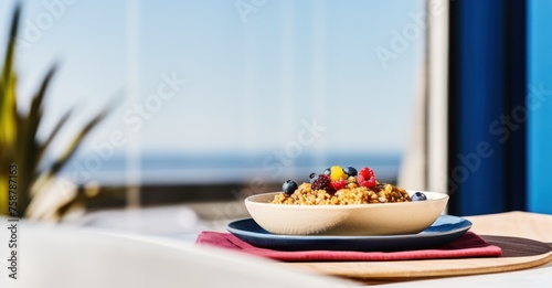 texture and colorful details of a bowl of oatmeal adorned with nutritious toppings, inviting viewers to embrace a healthy breakfast lifestyle.