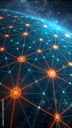 🌐 Title Digital Network Nodes on Curved Grid with Futuristic Global Connectivity Theme