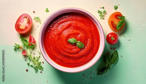Top view of a bowl with tomato paste isolated on transparent background
