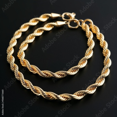 yellow gold twisted Singapore chain shimmering on plain black dark background