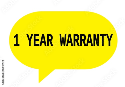 1 YEAR WARRANTY text in yellow simple speech bubble.