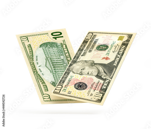 10 dollars banknotes on a white background. 3D illustration