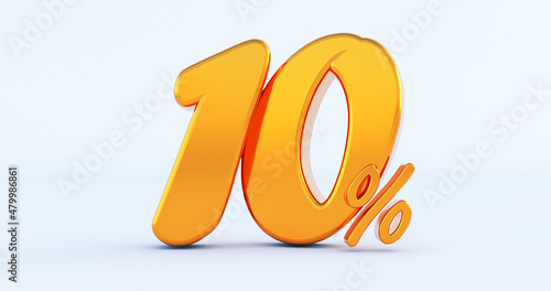 10 percent on white background. 3d render of a gold ten percent