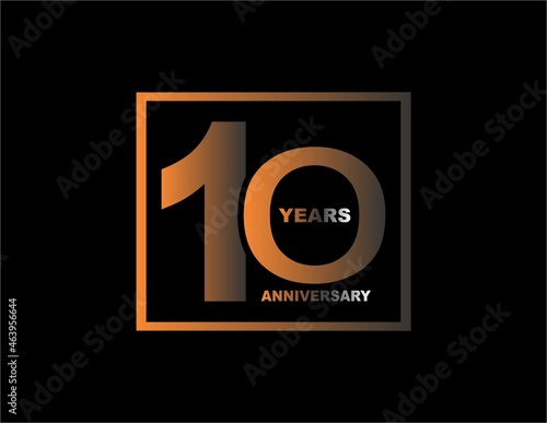 10 years anniversary celebration simple logo, isolated on black background