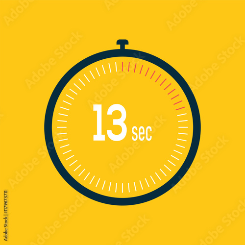 13 second timer clock. 13 sec stopwatch icon countdown time digital stop chronometer.