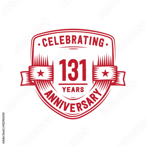 131 years anniversary celebration shield design template. 131st anniversary logo. Vector and illustration.