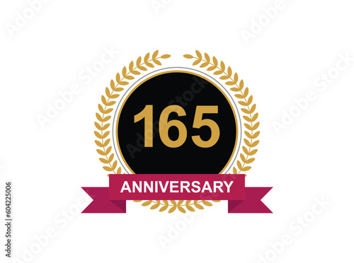 165th Anniversary Celebration. Anniversary logo design with golden color laurel wreath for birthday celebration event, invitation, greeting card, banner, poster, flyer, flyer.