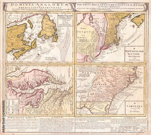 1737, Homann Heirs Map of New England, Georgia and Carolina, and Virginia and Maryland