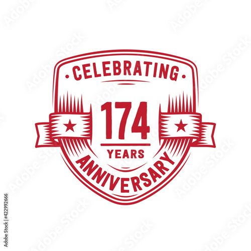 174 years anniversary celebration shield design template. 174th anniversary logo. Vector and illustration.