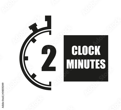2 Minutes timers clock. Time measure digital. Chronometer vector icon black isolated on white background.