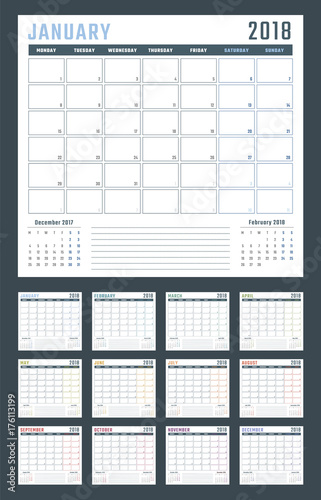 2018 year calendar, calendar design 2018 starts monday